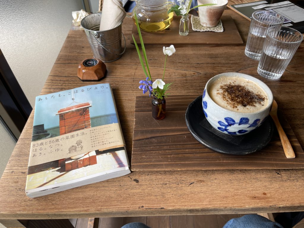 先日、塩尻の「カフェたね」さんにいった時に教えていただいた「あしたも、こはるびより。83歳と86歳の菜園生活」という本。