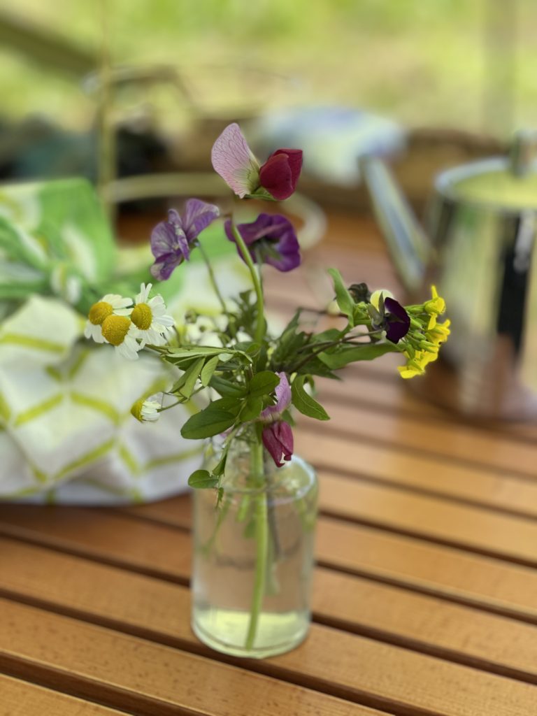 畑の中の花も咲き始め、昨年種をまいたカモミールが今年も花を咲かせてくれました。