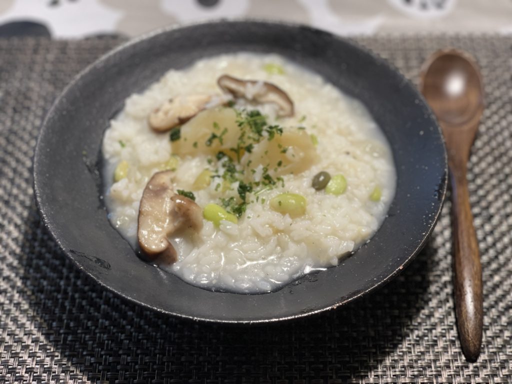 残りを使ってお昼はリゾット。夜は牛乳で味変。シチューぽっくしました。