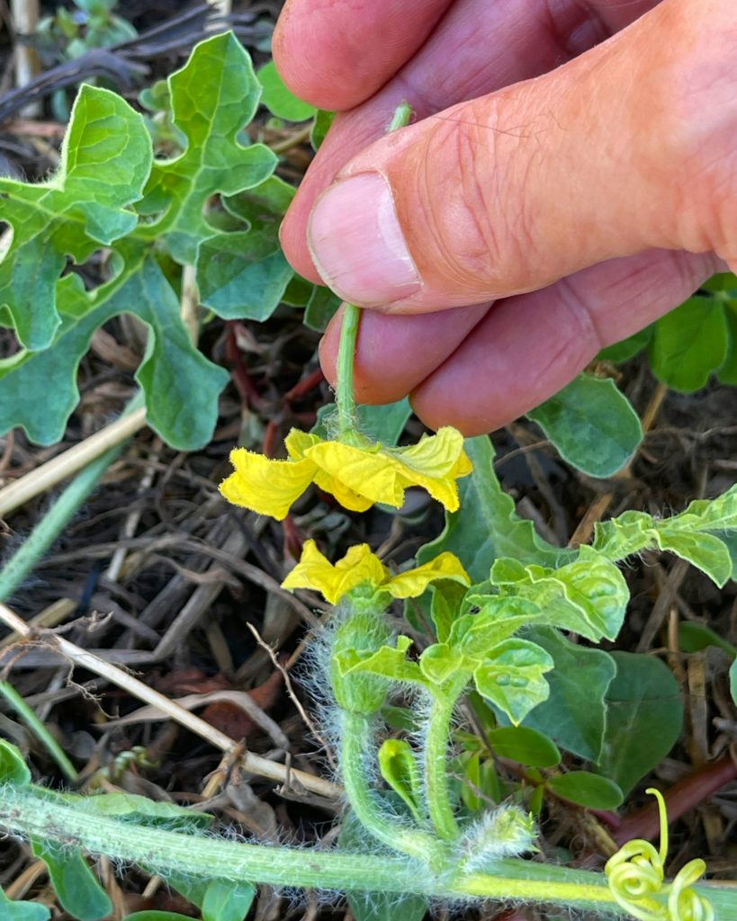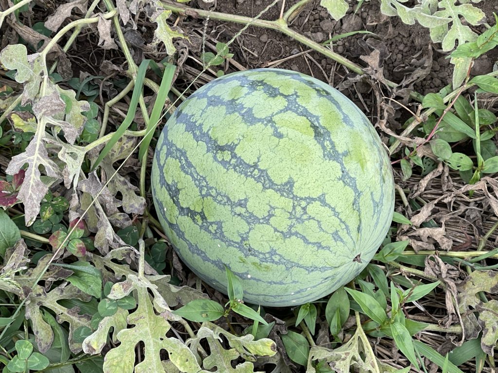 スイカ:意外な豊作。受粉作業を行うことで、12個くらいできました。