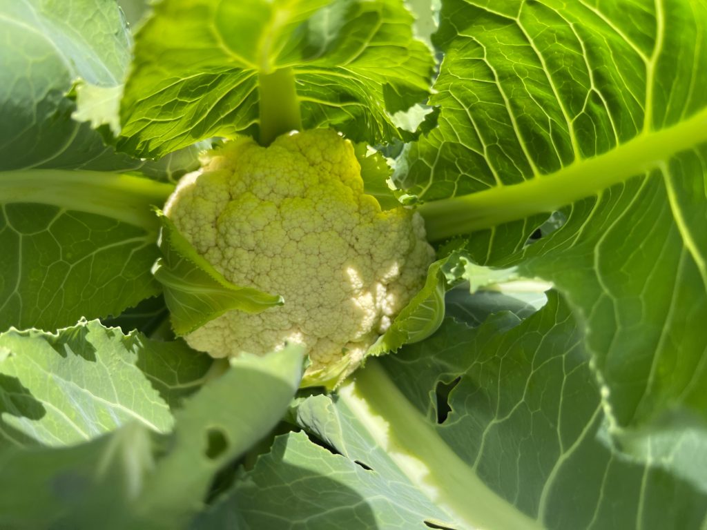 ブロッコリー、カリフラワー 最初虫が来たが、無事結球。カリフラワーが特に良かったです。