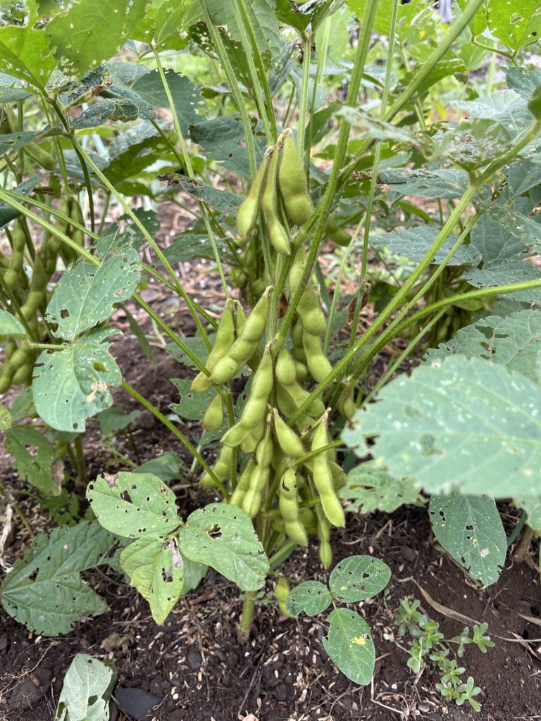 大豆:黒大豆の発芽難しい。最初豊作茹でたてサイコー。後は花期の酷暑と水切れで実入りが乏しく。来年はリベンジしたいです。